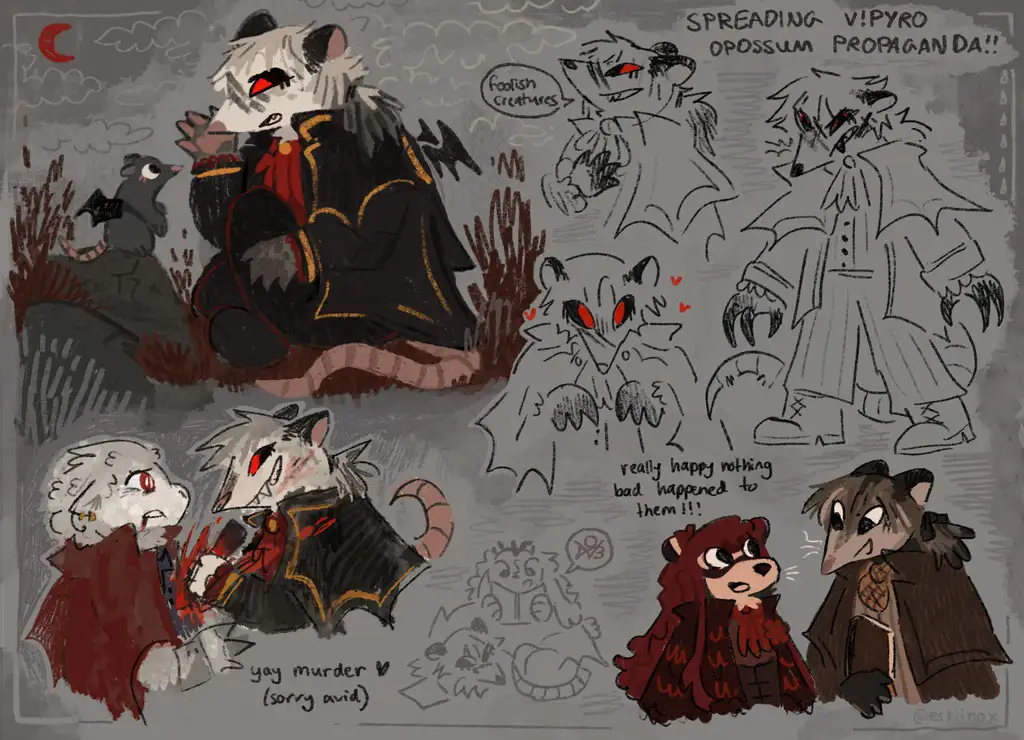 Anyway here are a lot of drawings I did of them as furries! And a lot of pyro opossum. the people (tumblr) loved pyro opossum