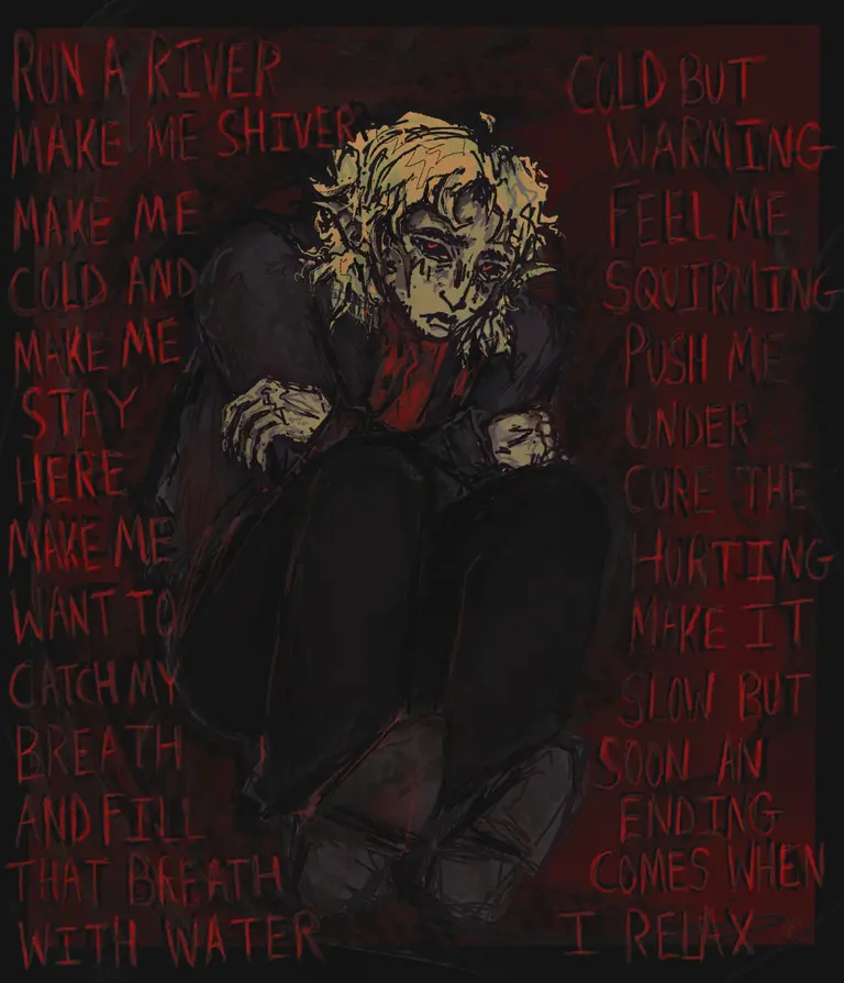 Also "I'll tell you I love you and need you, And cherish you over them all. But my effort gets small as I talk to a wall. And my words are all crumpled and torn" (vscott related obviously) ourgrh so basically ITS PYROVER FOREVER. Pyro never really left that lake (that river). They still feel like they're being pulled under, reaching out for someone to pull them out of the water, but no one ever does, not really. There's only so long they can fight the current.